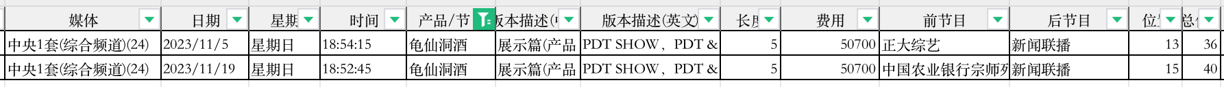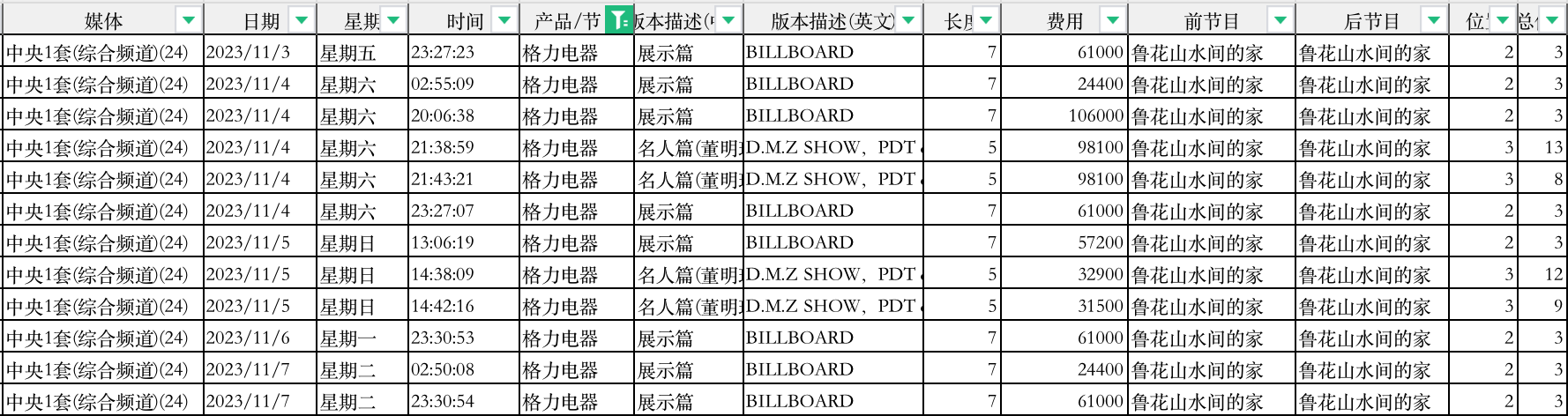 查询的结果会很详细,具体到播出的频道,播出时间,播出秒数等。